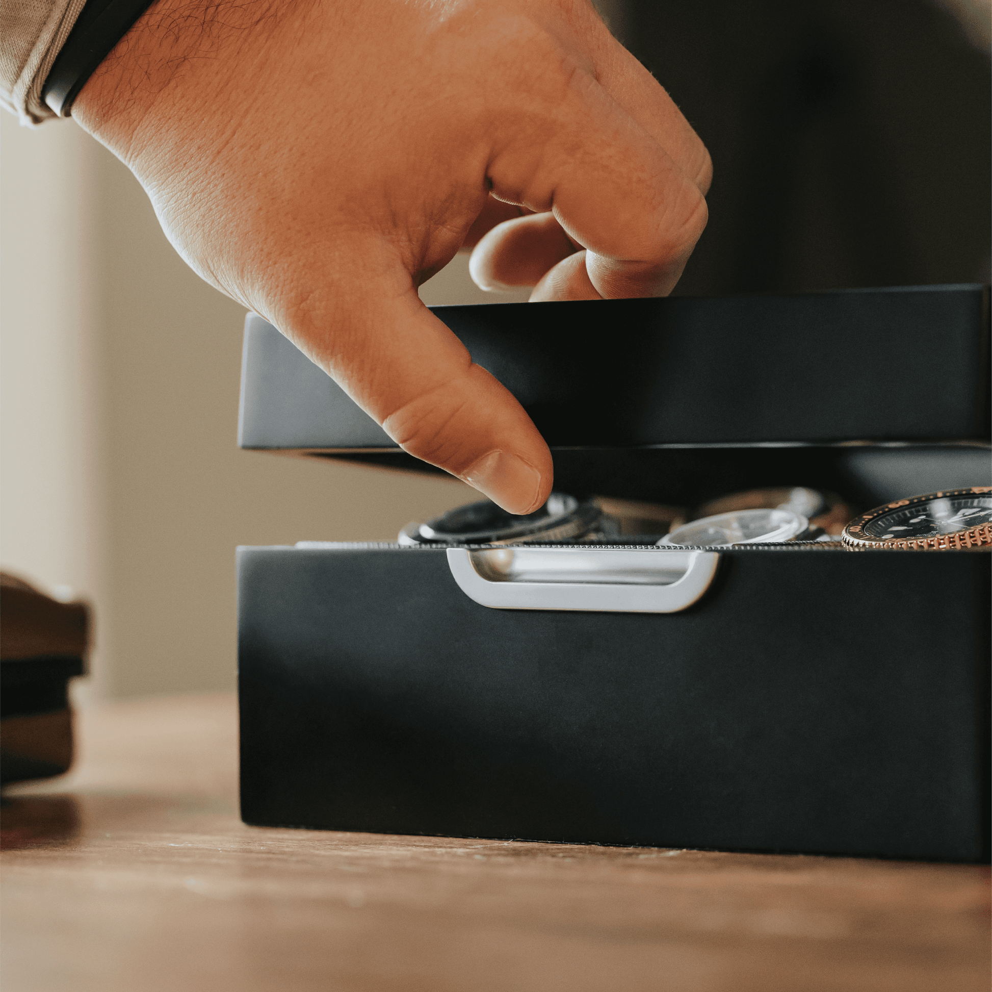 Are you a perfectionist just like us? If so, you’ll be happy to know that the watches will be perfectly aligned in your watch box with the help of our patent-pending watch stands.