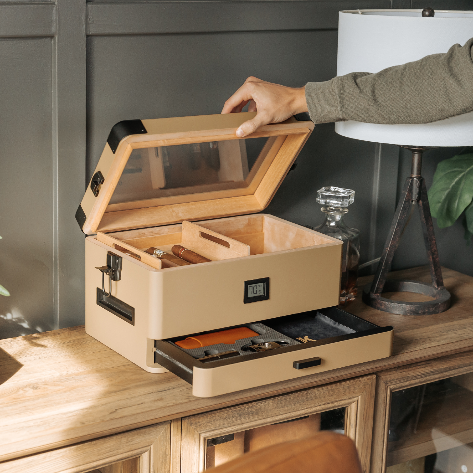 Hemos estado en el laboratorio creando la solución de humidor perfecta para quienes viven en climas áridos o quienes no tienen la suerte de tener inviernos tropicales. Lo tenemos cubierto desde el primer momento.