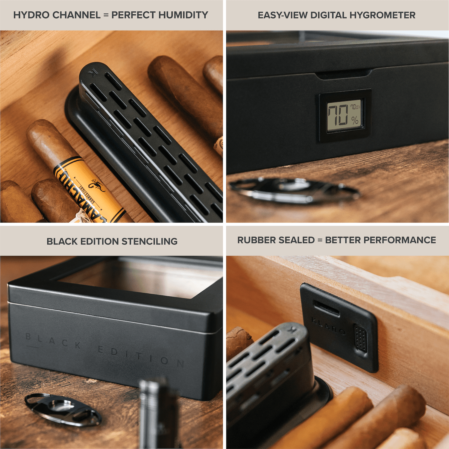 - Incluye Hydro System™ completo (Hydro Tray™ y dos botellas de Klaro Humidor Solution)