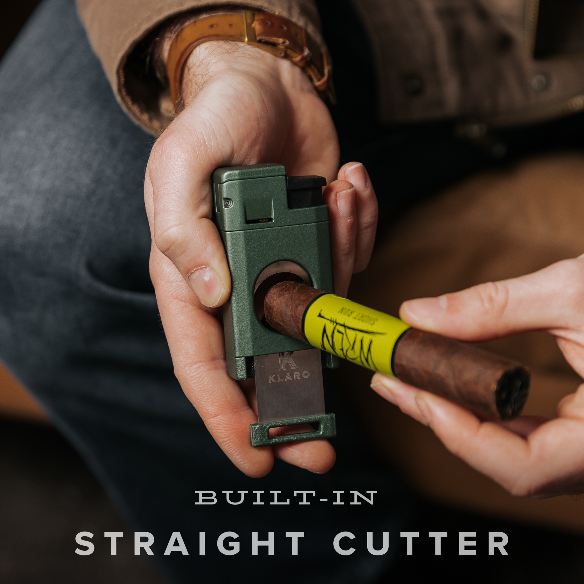 The Overland may be compact, but it doesn’t mess around. A triple-jet torch delivers a blazing, even burn on demand, while the built-in straight cutter ensures a clean, precise cut every time. The spring-loaded flame cover keeps the jets safely protected and clean, so they’re always ready to fire up when you are. Need a quick butane check? The side fuel window has you covered. Fine-tuning your flame? The easy-turn adjuster makes it effortless. Wrapped in a tough-as-nails finish—available in satin black metal, powder-coated green, or coyote tan—and packed in a premium silicone travel case, this lighter is built to handle whatever’s next.