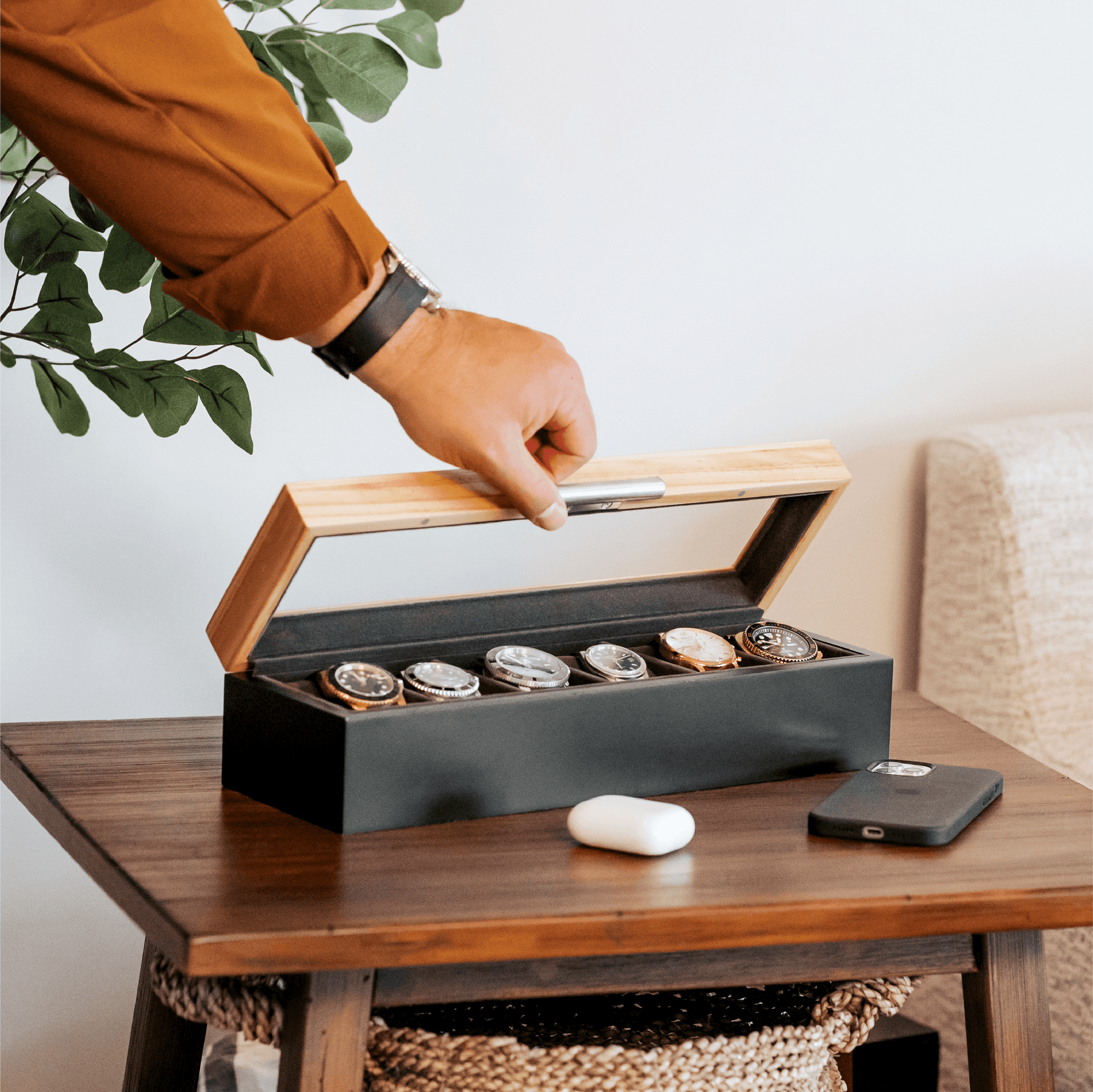 Are you a perfectionist just like us? If so, you’ll be happy to know that the watches will be perfectly aligned in your watch box with the help of our patent-pending watch stands.