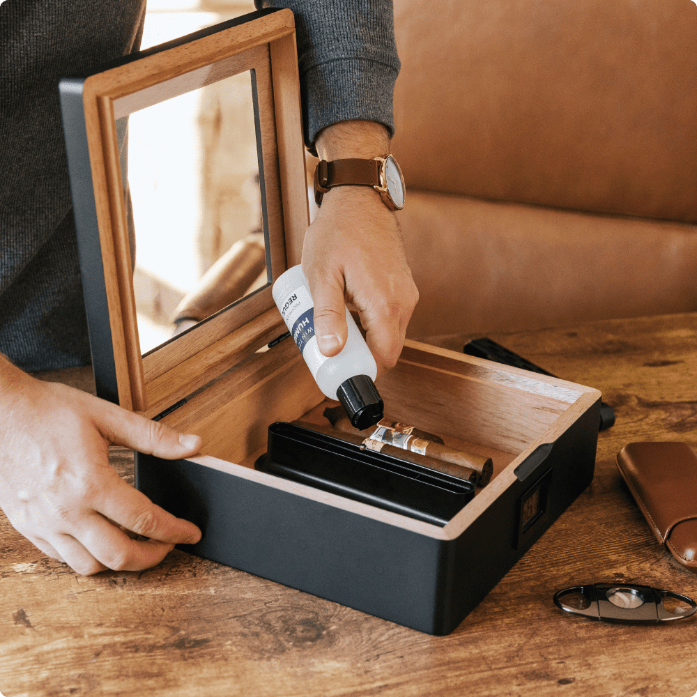 The updated shape isn’t just about space-saving—it’s also practical. Its vertical structure makes refilling a breeze with less risk of spilling, while the curved sides allow cigars to stack neatly around it. For those in drier climates or during winter months, using two Hydro Channels can significantly boost humidity control, ensuring your cigars stay in peak condition.