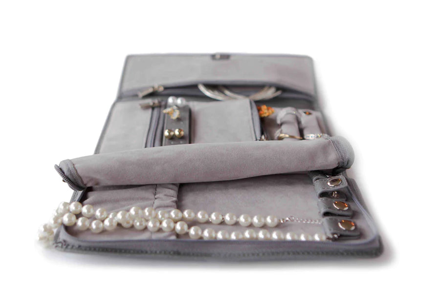 • Cet écrin de voyage est excellent pour les bijoux de petite taille, mais ne convient pas aux grands Bengals ou aux grandes boucles d'oreilles. Si vous avez besoin d'un plus grand portefeuille, nous vous recommandons le Grand coffret à bijoux de voyage en noir.