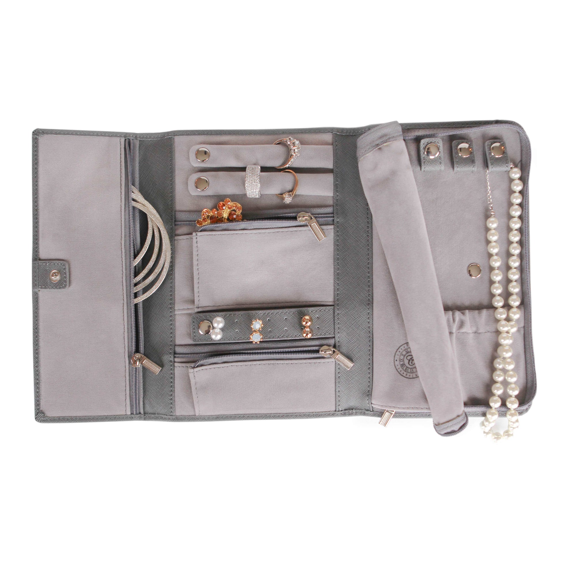 Il s'agit de l'étui à bijoux de voyage de taille moyenne le plus luxueux du marché. Il est fabriqué en cuir véritable et est recouvert d'un élégant revêtement Saffiano gris. Le revêtement Saffiano est utilisé par des marques comme Prada, Michael Kors et Chanel pour donner aux produits en cuir une texture croisée tout en servant à préserver et à protéger le cuir contre l'eau et l'usure. Ne vous inquiétez pas de vous faire voler vos bijoux dans vos bagages enregistrés ; il vous suffit de mettre cet étui dans votre sac à main ou votre sac à main, et vous pourrez vous reposer. Cet organisateur de bijoux de voyage est parfait pour les bijoux de petite taille, mais peut être inapproprié pour les bijoux de grande taille.