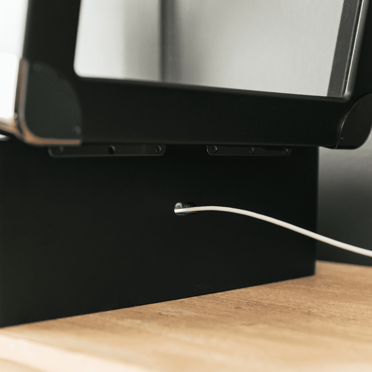 La caja del reloj militar viene con un soporte para cargador Apple nada más sacarlo de la caja. Simplemente empuja el cargador a través del orificio de paso del cable en la parte posterior para comenzar a cargar. Ningún reloj se queda atrás... ni siquiera un Apple Watch.