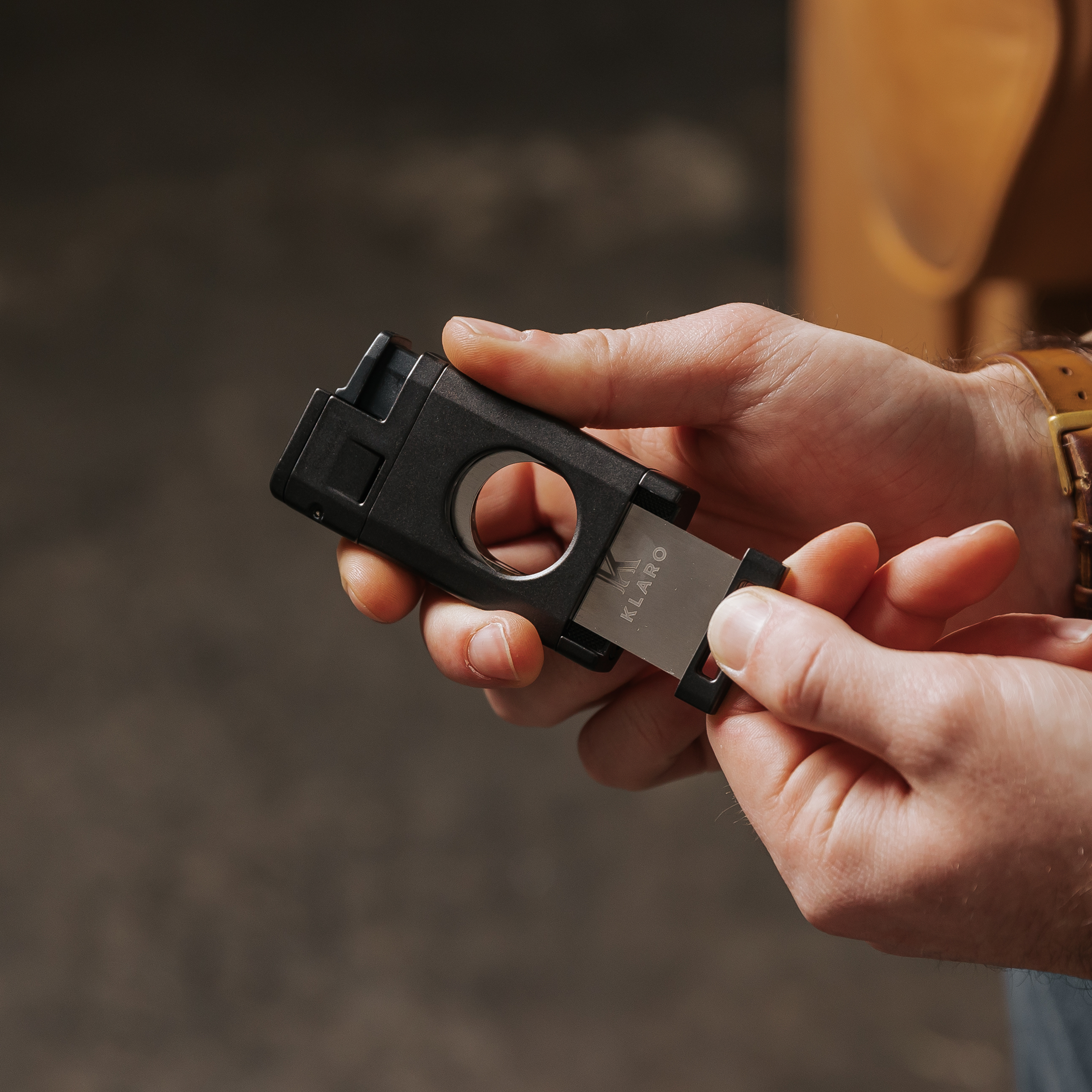 The Overland may be compact, but it doesn’t mess around. A triple-jet torch delivers a blazing, even burn on demand, while the built-in straight cutter ensures a clean, precise cut every time. The spring-loaded flame cover keeps the jets safely protected and clean, so they’re always ready to fire up when you are. Need a quick butane check? The side fuel window has you covered. Fine-tuning your flame? The easy-turn adjuster makes it effortless. Wrapped in a tough-as-nails finish—available in satin black metal, powder-coated green, or coyote tan—and packed in a premium silicone travel case, this lighter is built to handle whatever’s next.