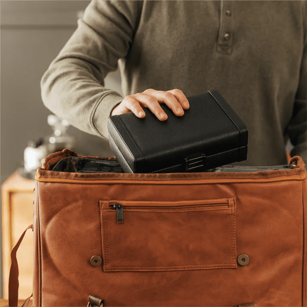 Il portasigari da viaggio Maxwell è un accessorio indispensabile, perfetto per chi ama godersi i propri sigari preferiti anche in viaggio. La resistente custodia rigida, rivestita in pelle vegana di prima qualità, assicura che i sigari siano protetti da qualsiasi danno durante il viaggio. Inoltre, la custodia Maxwell può contenere fino a 8 sigari grandi e li tiene saldamente in posizione grazie a un elastico. L'interno è rivestito in lussuoso legno di cedro spagnolo, che fornisce l'ambiente perfetto per preservare l'aroma e le note di sapore dei vostri preziosi sigari. Con il portasigari da viaggio Maxwell come fidato compagno, potrete portare con voi le vostre preziose sigarette ovunque vi porti il vostro viaggio.