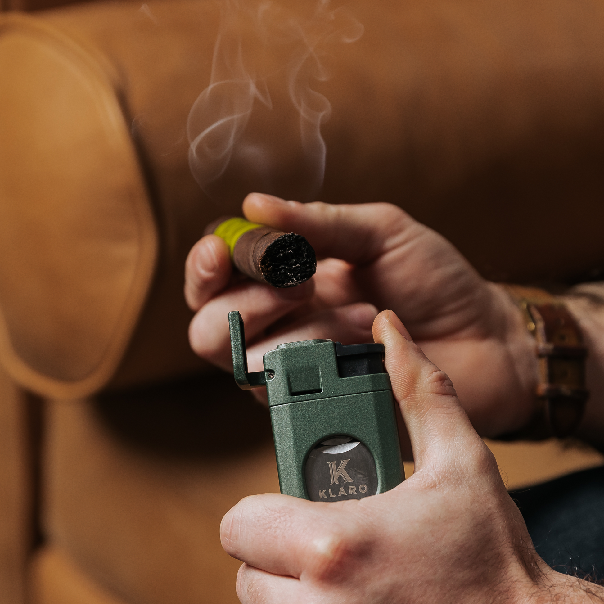 The Overland may be compact, but it doesn’t mess around. A triple-jet torch delivers a blazing, even burn on demand, while the built-in straight cutter ensures a clean, precise cut every time. The spring-loaded flame cover keeps the jets safely protected and clean, so they’re always ready to fire up when you are. Need a quick butane check? The side fuel window has you covered. Fine-tuning your flame? The easy-turn adjuster makes it effortless. Wrapped in a tough-as-nails finish—available in satin black metal, powder-coated green, or coyote tan—and packed in a premium silicone travel case, this lighter is built to handle whatever’s next.
