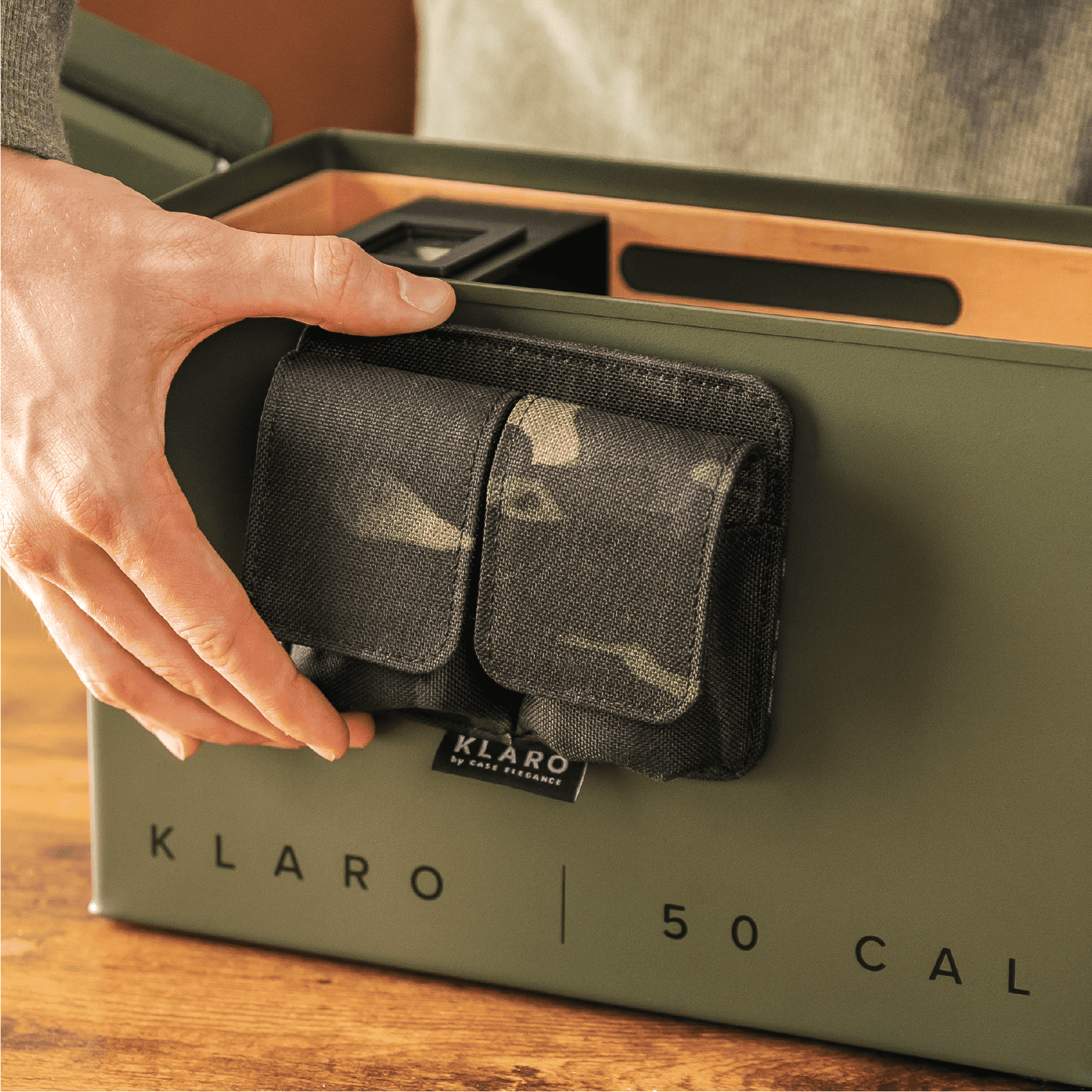 Mantenga sus herramientas para fumar bajo control con el soporte magnético para accesorios de nailon balístico incluido. Pégalo en la tapa o en el exterior; se adhiere como por arte de magia. Tus elementos esenciales para fumar, siempre al alcance de la mano, nunca fuera de la vista.