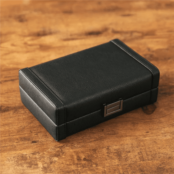 Maxwellトラベルシガーケースは、外出先でお気に入りのシガーを楽しむ方に最適な、シガーアクセサリーの必需品です。プレミアムヴィーガンレザーに包まれた耐久性のあるハードシェルケースは、旅行中のあらゆるダメージから葉巻を確実に保護します。さらに、Maxwellは8本までの大きな葉巻を収めることができ、ゴムバンドでしっかりと固定することができます。内側は贅沢なスペイン杉で覆われており、大切な葉巻のアロマとフレーバーノートを保つのに最適な環境を提供します。Maxwellトラベルシガーケースがあれば、あなたの大切な葉巻をどこへでも持ち運ぶことができます。