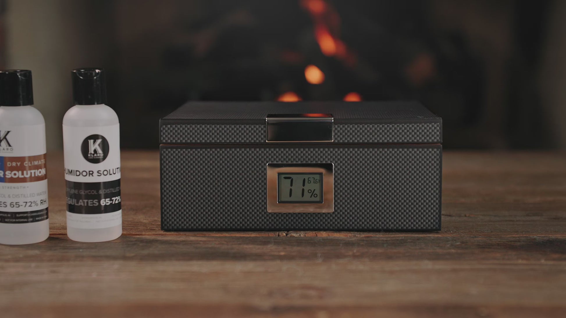 Introducing the Kingston Carbon Fiber Finish Humidor. We found out the hard way that seasoning your cigars can be a tricky process and ends up being largely inaccurate. To solve this industry-wide problem, we carefully embedded a digital hygrometer in the front of the humidor that will precisely monitor the humidity levels. We have thoroughly examined this humidor in wet, temperate, and dry environments to assure the best levels of humidity for your cigars. This premium humidor features a modern carbon fiber finish, front digital hygrometer, patent-pending Hydro System, Spanish cedar, and the tightest magnetic enclosure on the market.