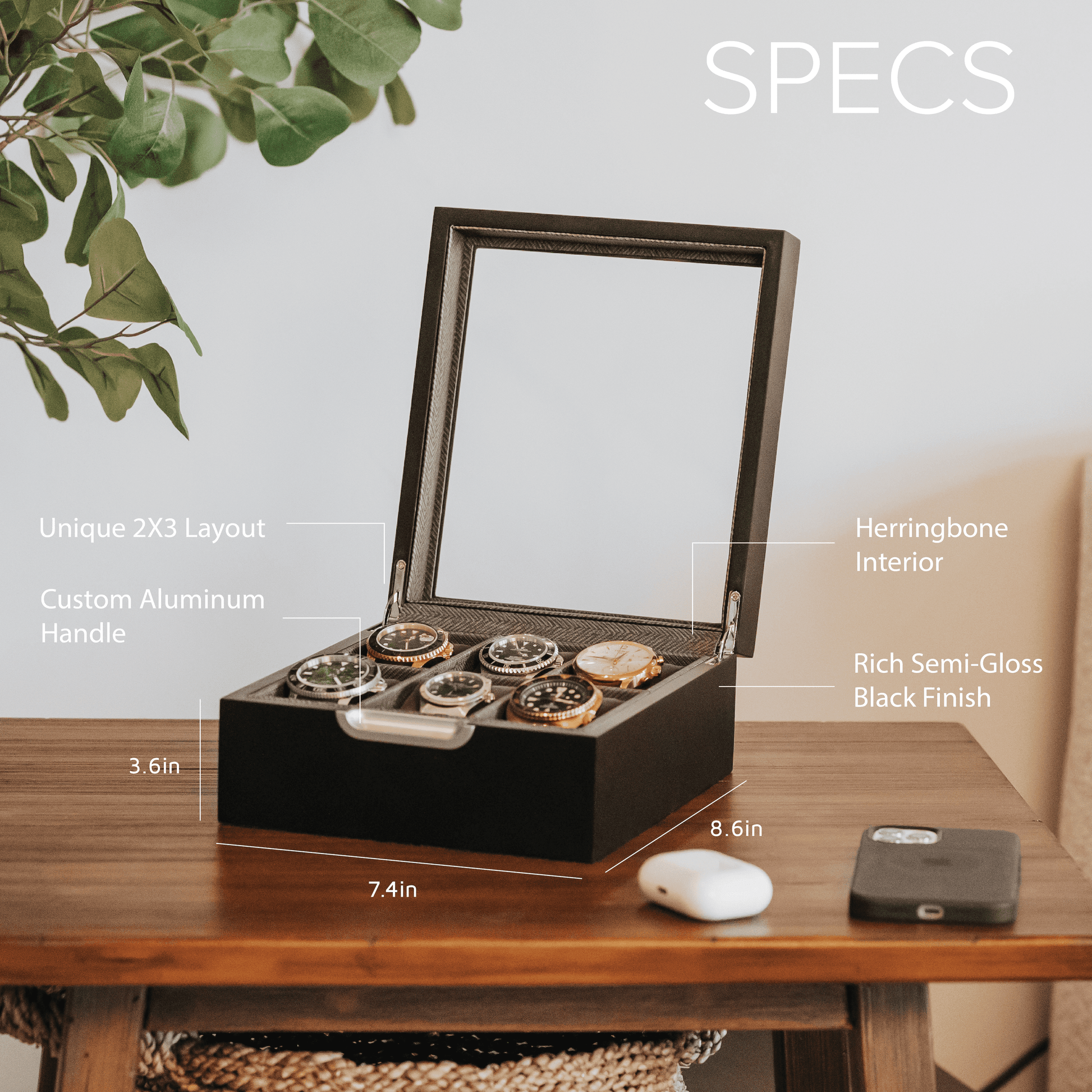 Featuring a space-efficient 2x3 grid and an elegant herringbone pattern that highlights your collection. Each touch of the ultra-soft felt pillows promises a luxurious cradle for your watches, ensuring they are stored as beautifully as they are displayed.