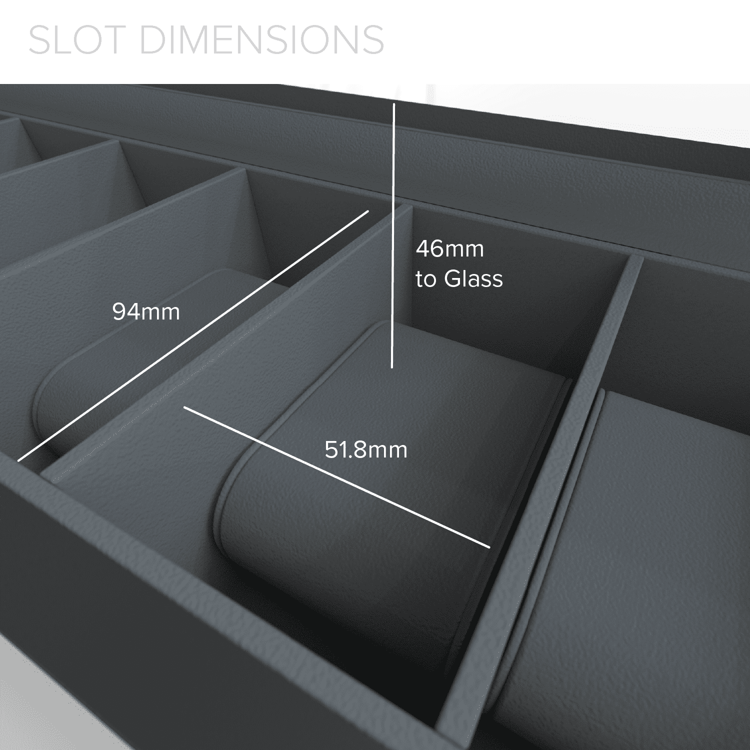 Are you a perfectionist just like us? If so, you’ll be happy to know that the watches will be perfectly aligned in your watch box with the help of our patent-pending watch stands.