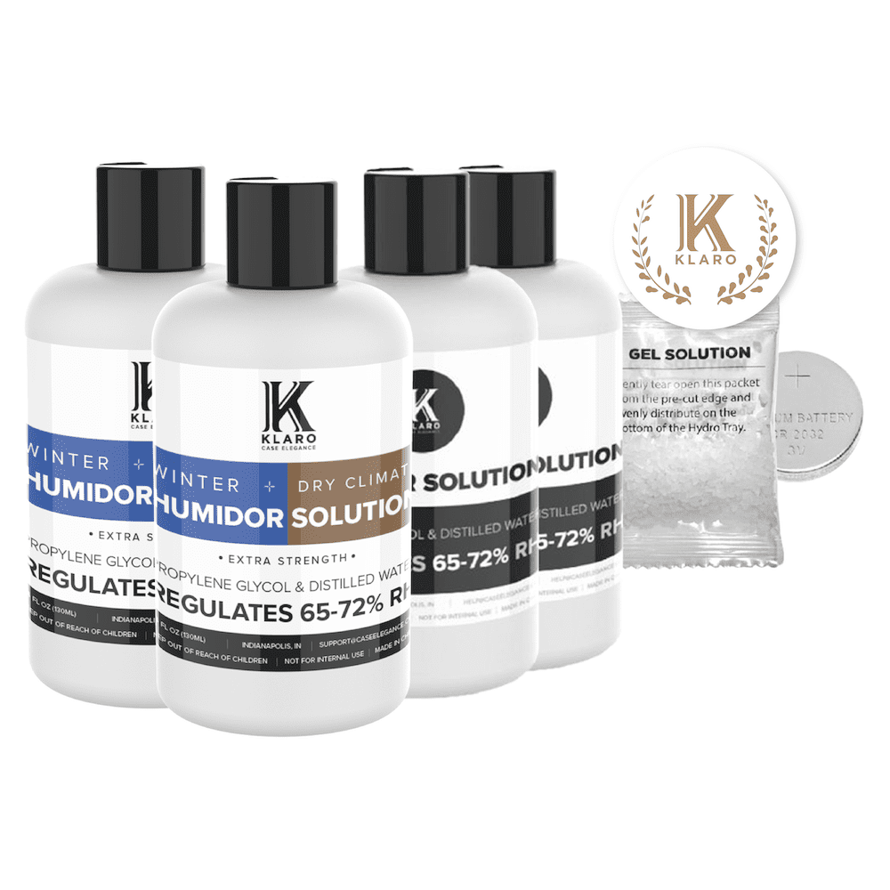 • La solución de humidor de Klaro es excelente para regular la humedad de su humidor entre un 65 y un 72 % de humedad relativa.