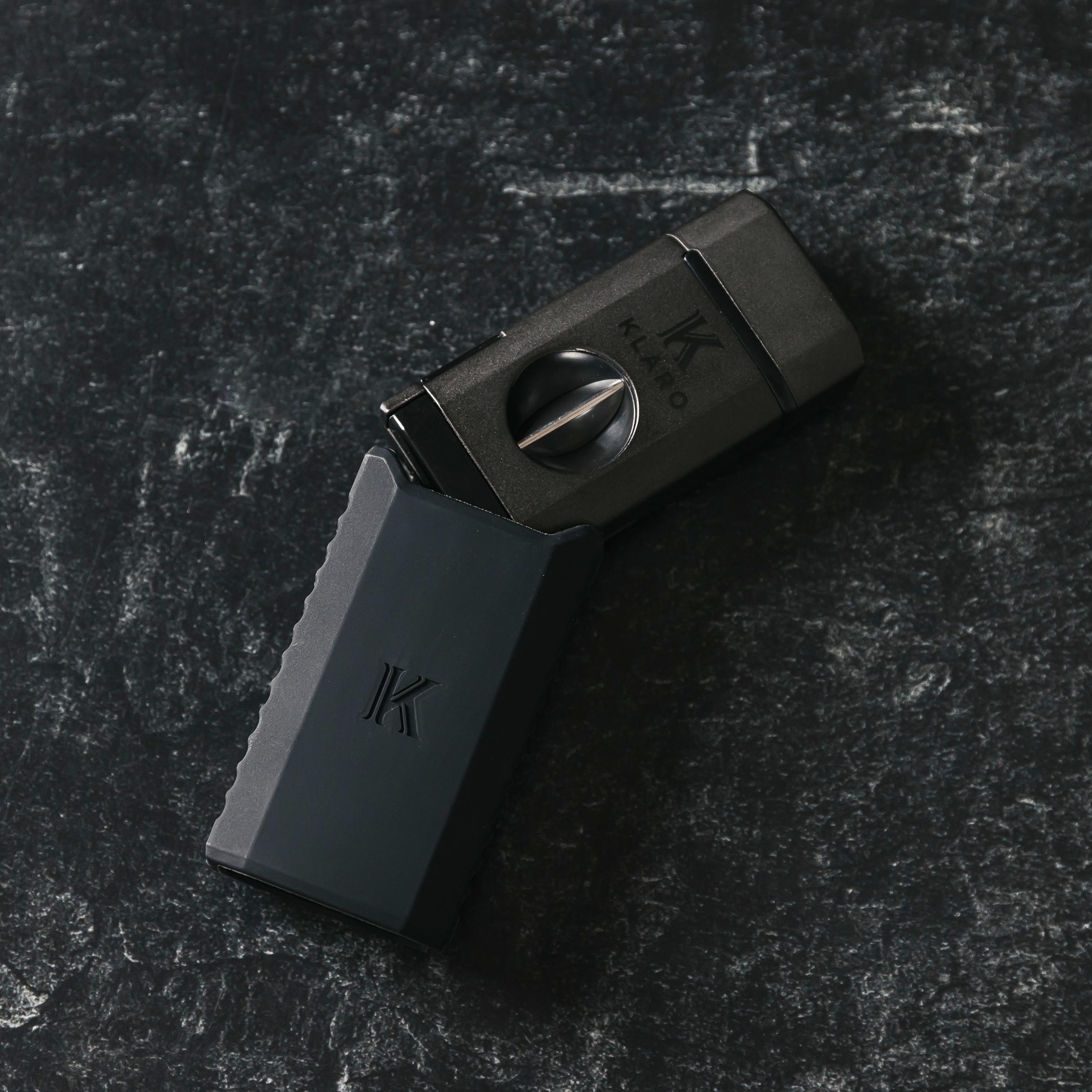 Introducing the Klaro Overland Lighter & Cutter Series – your ultimate companion for a perfect cigar experience. Imagine lighting your cigar with a robust triple-jet flame that delivers an even burn every time, making each puff as satisfying as the last. No more carrying extra tools—the built-in, spring-loaded V-Cut gives you a precise, clean cut on demand, so you're always ready to enjoy your cigar. The heavy-duty flip-top lid doubles as a cigar stand for those moments when you're on the move, while the easy-turn flame adjuster lets you tailor the intensity to your liking. This lighter is built to keep up with its durable and stunning satin black metal finish and a premium silicone travel case to protect it from bumps and scrapes.